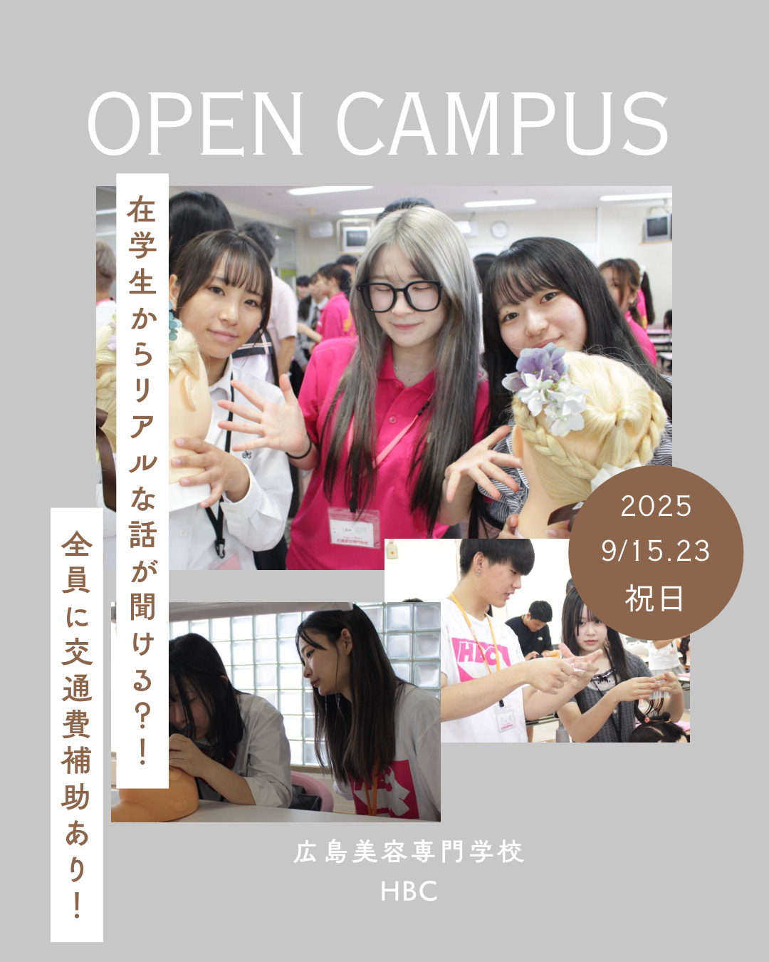 9月のオープンキャンパスのご案内です(^^)/ 9月15日(月祝)メンズスタイリングスペシャル 9月23日(火祝)カラーリングスペシャル どちらの日程もスペシャル体験授業に加え、 カット・ワインディング・ヘアアレンジ メイク・ネイル・アイラッシュ・エステ の体験授業もご用意!! 枠が埋まり次第予約を締め切らせていただきますので お早めにご予約ください✨