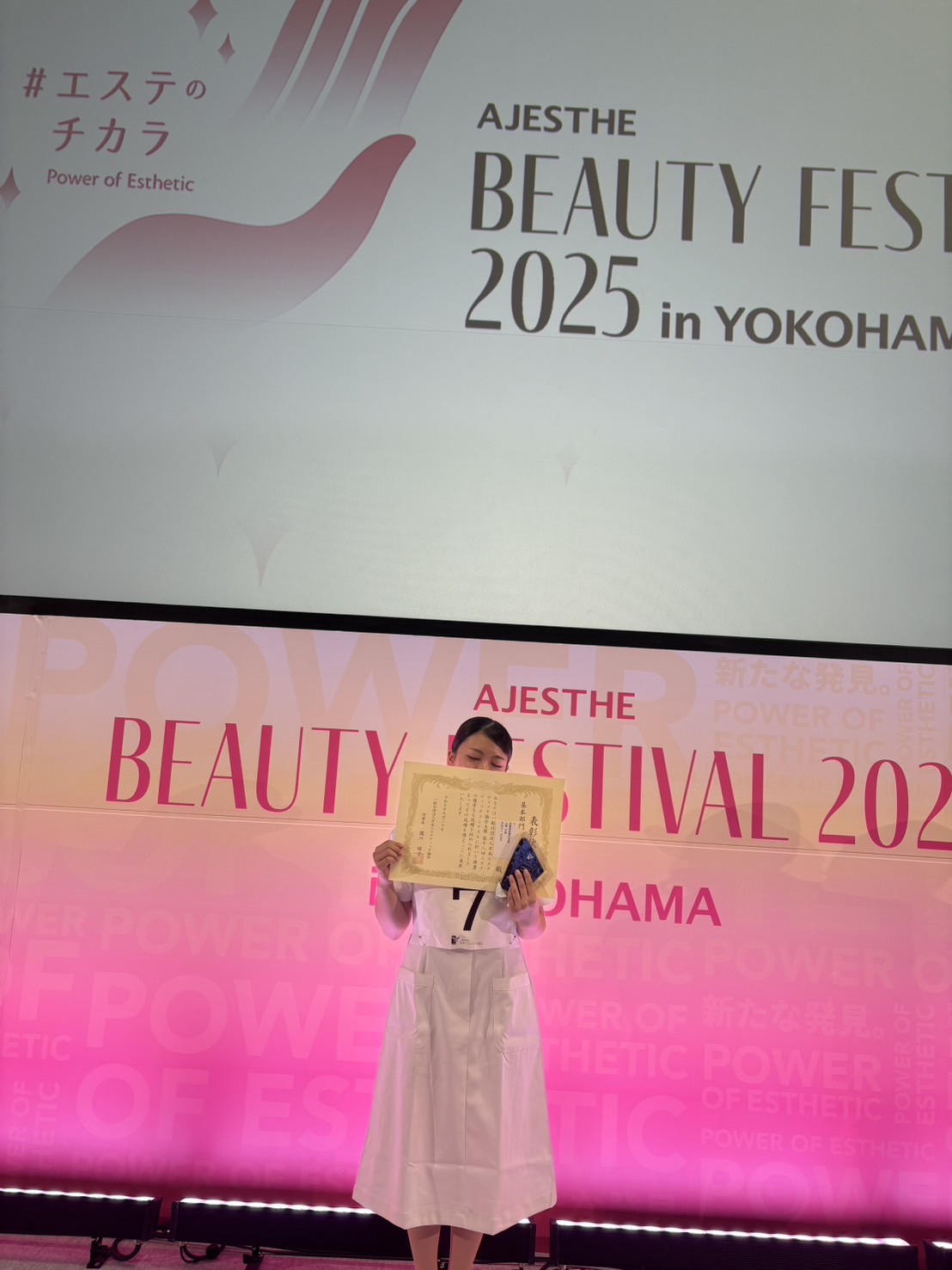 昨日、第18回エステティックコンテストが行われました! 基本部門(28名出場)において エステティックコース1年 上廻さん が入賞いたしました✨ (金賞1名・銀賞1名・銅賞1名・入賞2名) おめでとうごさいます!!.。o○.